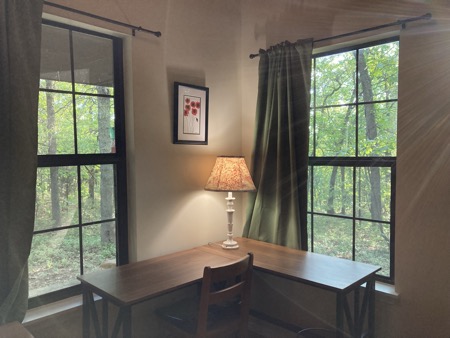 Our Guadalupe hermitage cabin is located in a private spot with big picture windows for looking out at the forest....